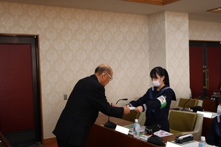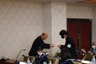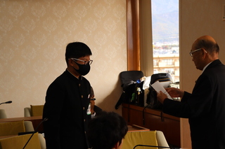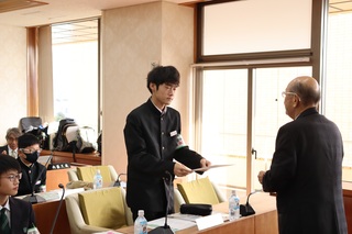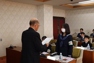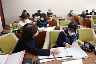 議会改革特別委員会では、主権者教育の取り組みの一環として、昨年度から中学生の職場体験の受け入れを行っております。今年度の3校目として、11月11日から13日に双葉中学校2年生8名の受け入れを行いました。最初に議長から臨時市議会議員の任命を受け、その後、座学で議会や議員について学んだり、建設中のしのはら公園子ども体験学習施設の工事現場を視察しました。その後、担当課から質問内容について伺い、市議会議員と一緒に質問を作成し、実際に議場の演壇に立って一般質問にも挑戦しました。最後にまとめとして、自分の行なった質問を記事にして、双葉中学校2年生による議会だよりも作成しました。